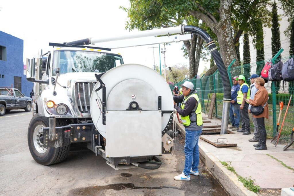 A través de las brigadas “Más territorio, menos escritorio”, personal municipal realizó trabajos de desazolve de coladeras sobre la avenida Lago del Niño, utilizando el camión Vactor, una herramienta clave para retirar residuos acumulados y evitar taponamientos.