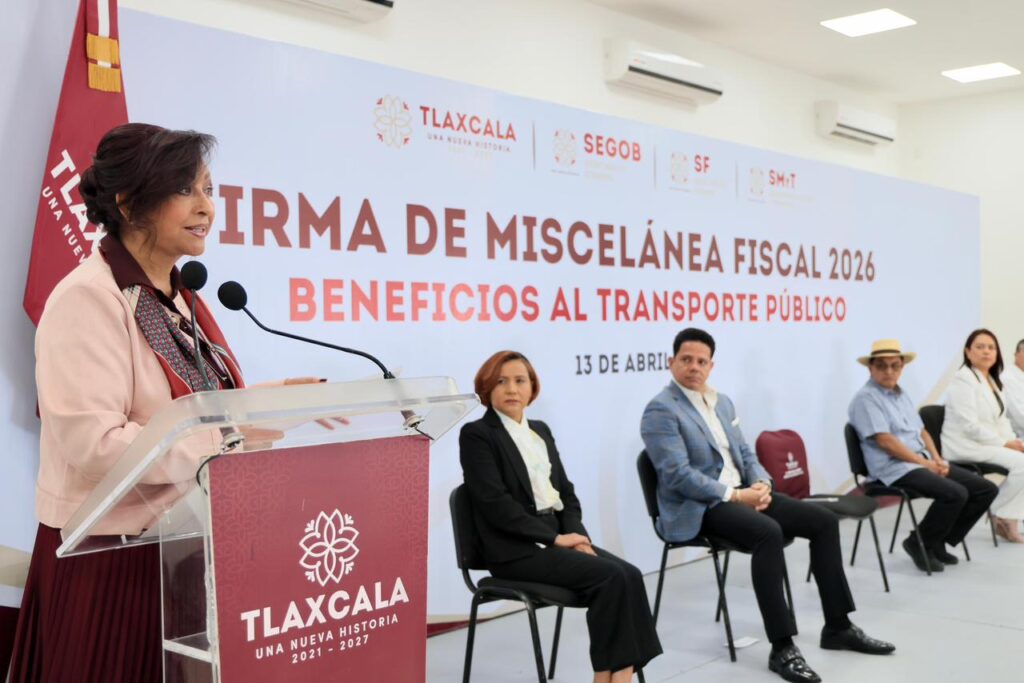 La gobernadora Lorena Cuéllar Cisneros firmó el acuerdo que establece la Resolución de la Miscelánea Fiscal 2026, instrumento que beneficiará a 4 mil 500 concesionarios mediante diversas facilidades administrativas, con el objetivo de que cumplan con sus obligaciones, garantizar el servicio de transporte público y el derecho a la movilidad a las y los tlaxcaltecas.