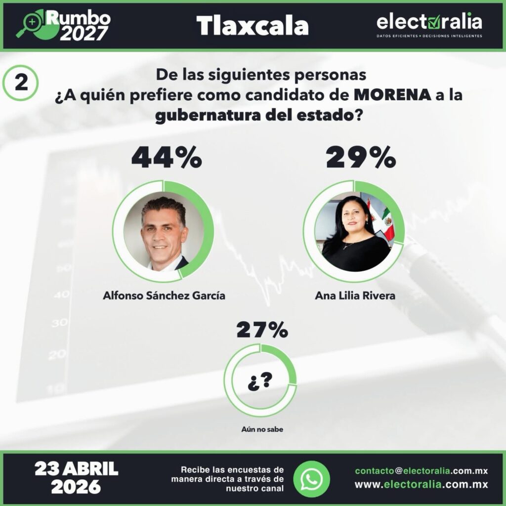 ELECTORALIA REVELA: MORENA LIDERA EN TLAXCALA Y ALFONSO SÁNCHEZ ENCABEZA LA CARRERA RUMBO A 202