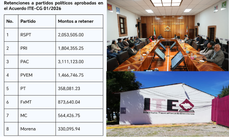 El Instituto Tlaxcalteca de Elecciones (ITE) aprobó este lunes la actualización de los montos pendientes…