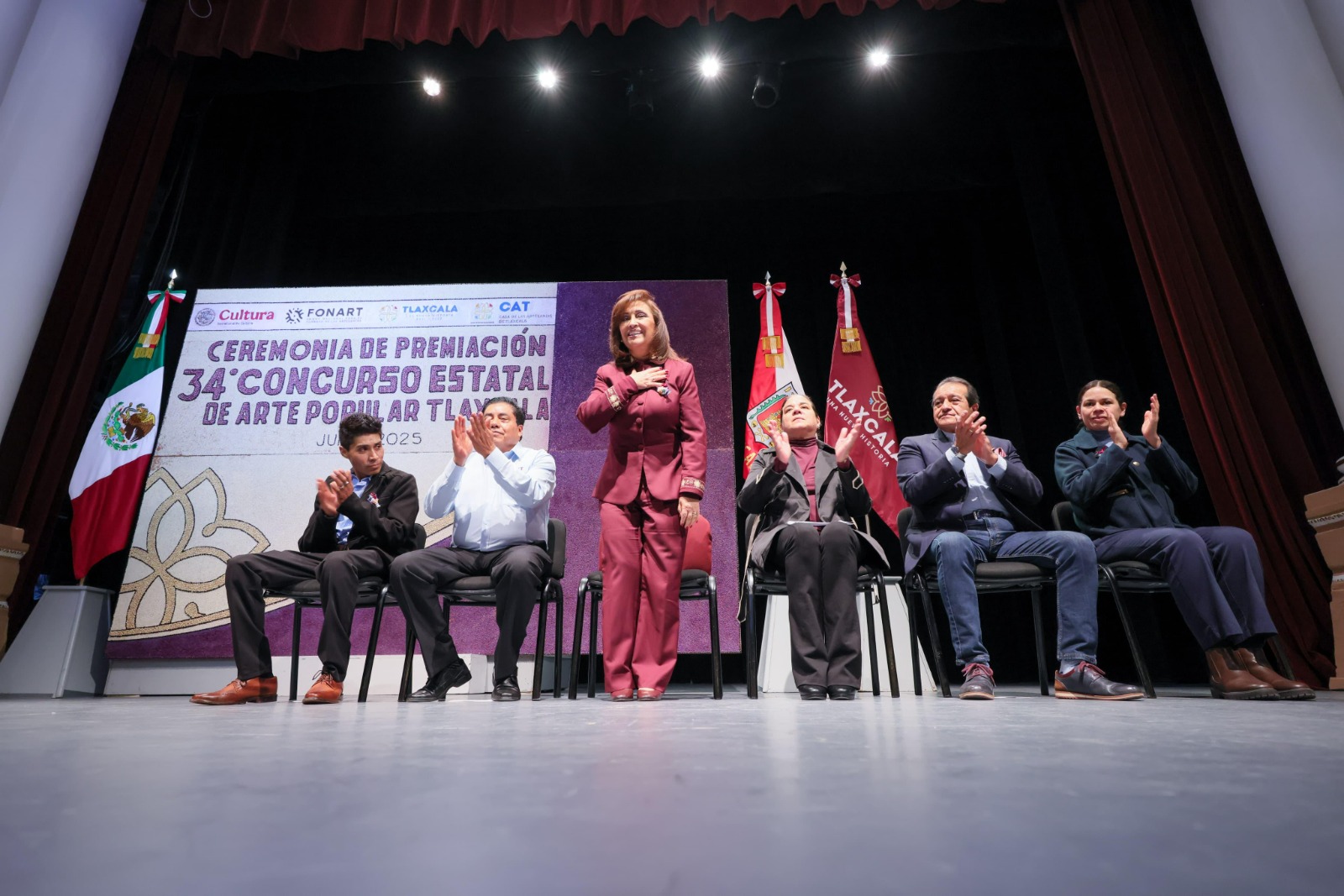 *La gobernadora Lorena Cuéllar encabezó la ceremonia de premiación en el Teatro Xicohténcatl, en el…