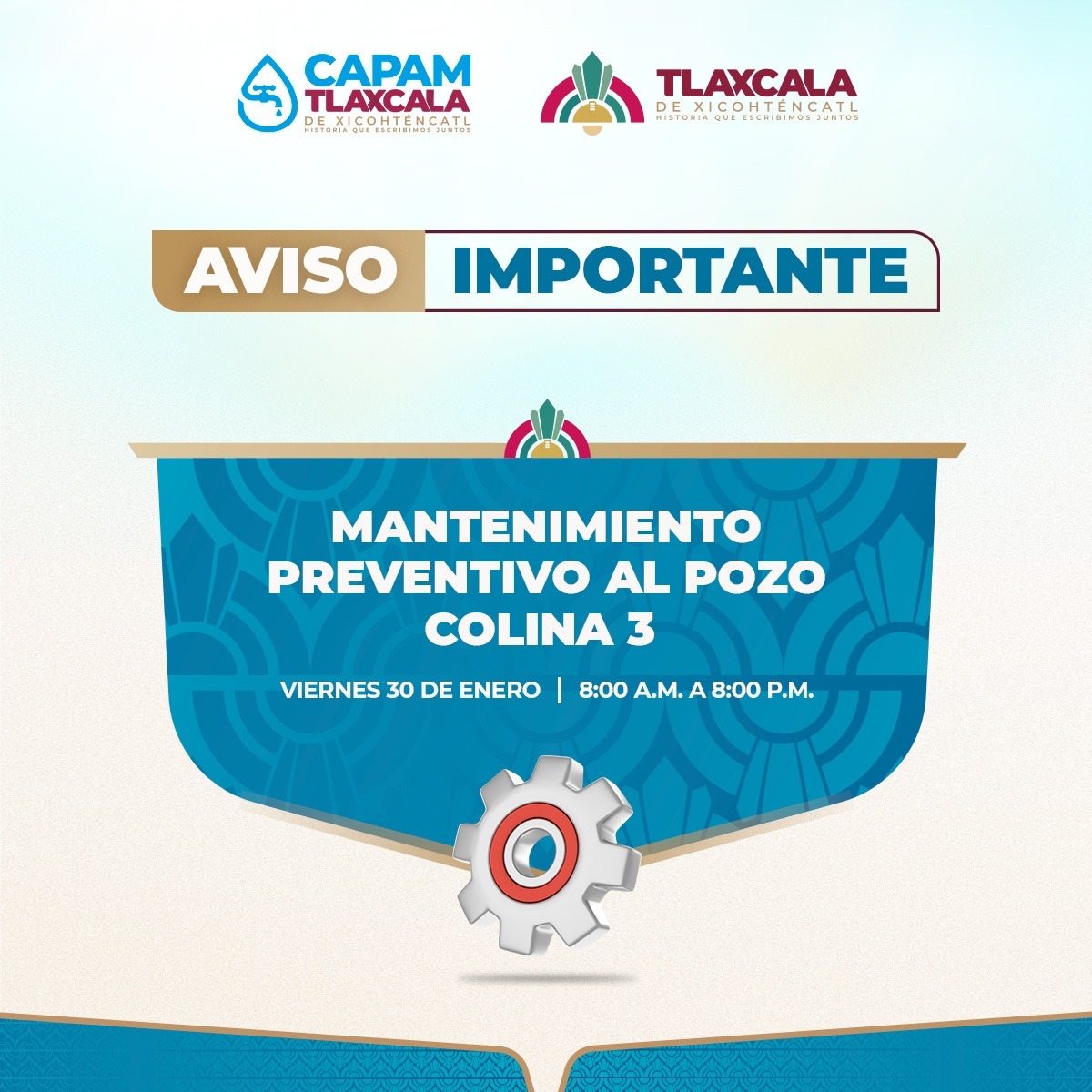 La Comisión de Agua Potable y Alcantarillado del Municipio de Tlaxcala (Capam) informa que el…