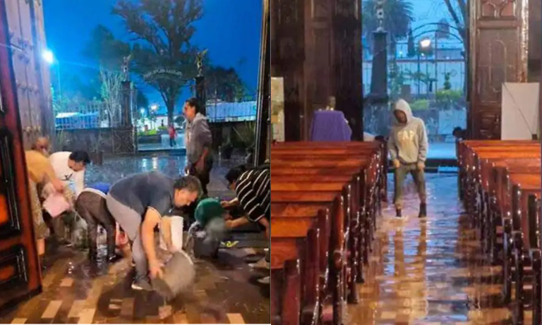 PARROQUIA DE SANTA ANA SUFRE INUNDACIÓN TRAS FUERTE TORMENTA EN CHIAUTEMPAN; BANCAS RECIÉN RESTAURADAS, LAS MÁS AFECTADAS